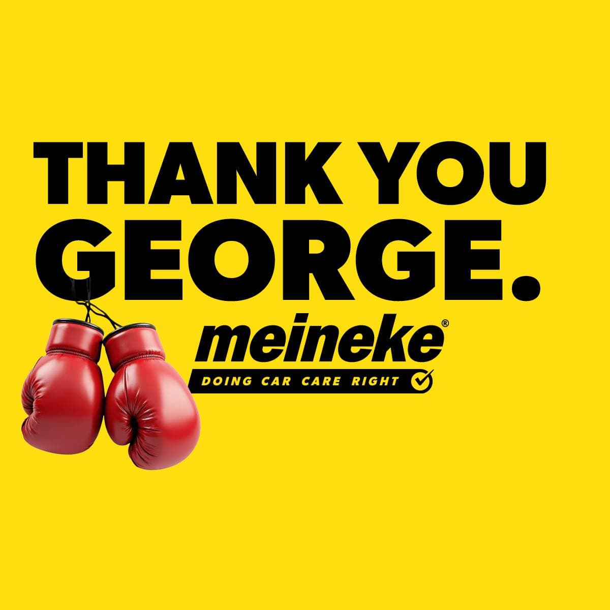 Accompanied by an image of his signature red boxing gloves, this tribute serves as an acknowledgment of the impact George had on our brand and the lives he touched. His warmth, authenticity, and enduring strength will forever be part of the Meineke legacy.